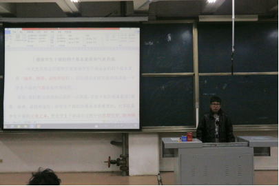 青马工程部联合学生会主席张栋铭在JE105开展“青马工程”第三次培训—“漫谈学生干部的四个基本素质和气质养成”培训会。万博娱乐城