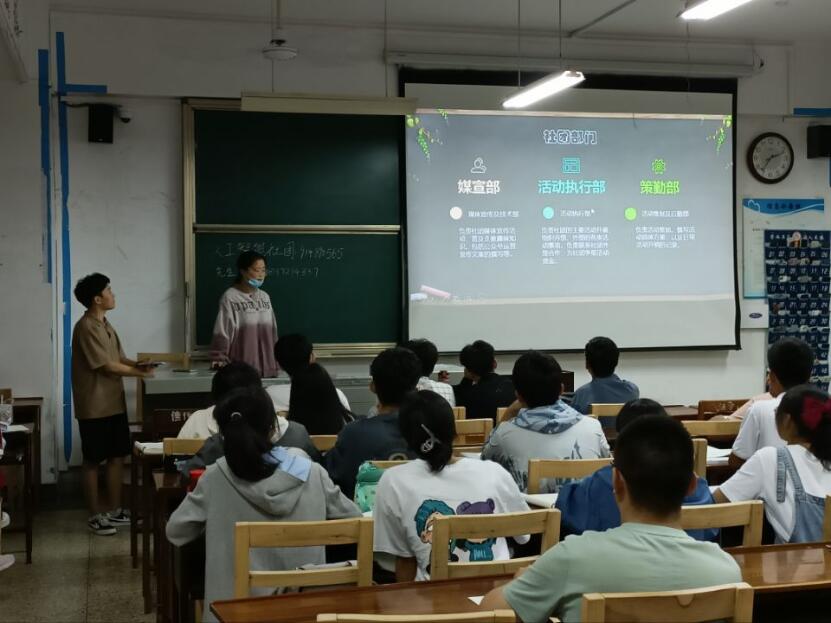 2022级新生教室进行早晚自习期间的社团宣讲。本次纳新宣讲将主要从社团简介、社团活动以及社团荣誉三个部分展开。