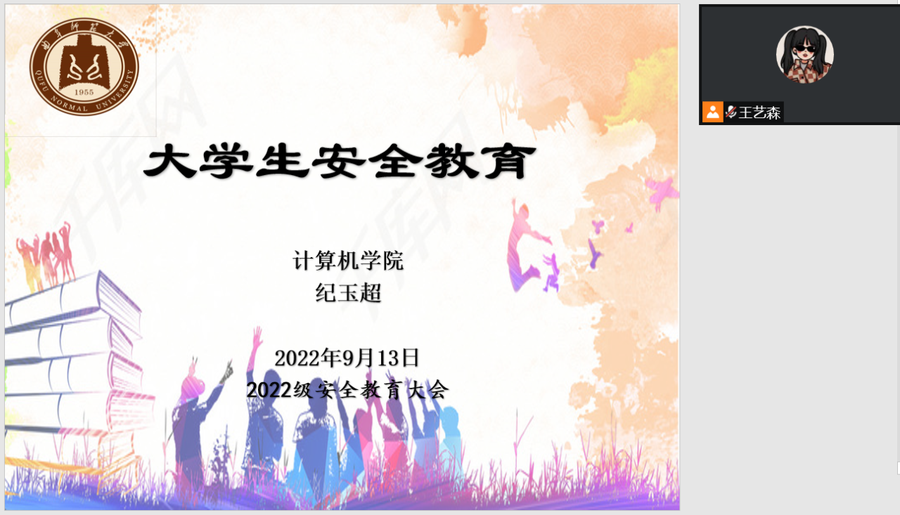 于9月13日组织2022级新生开展大学生安全讲座,由纪玉超老师担任主讲。