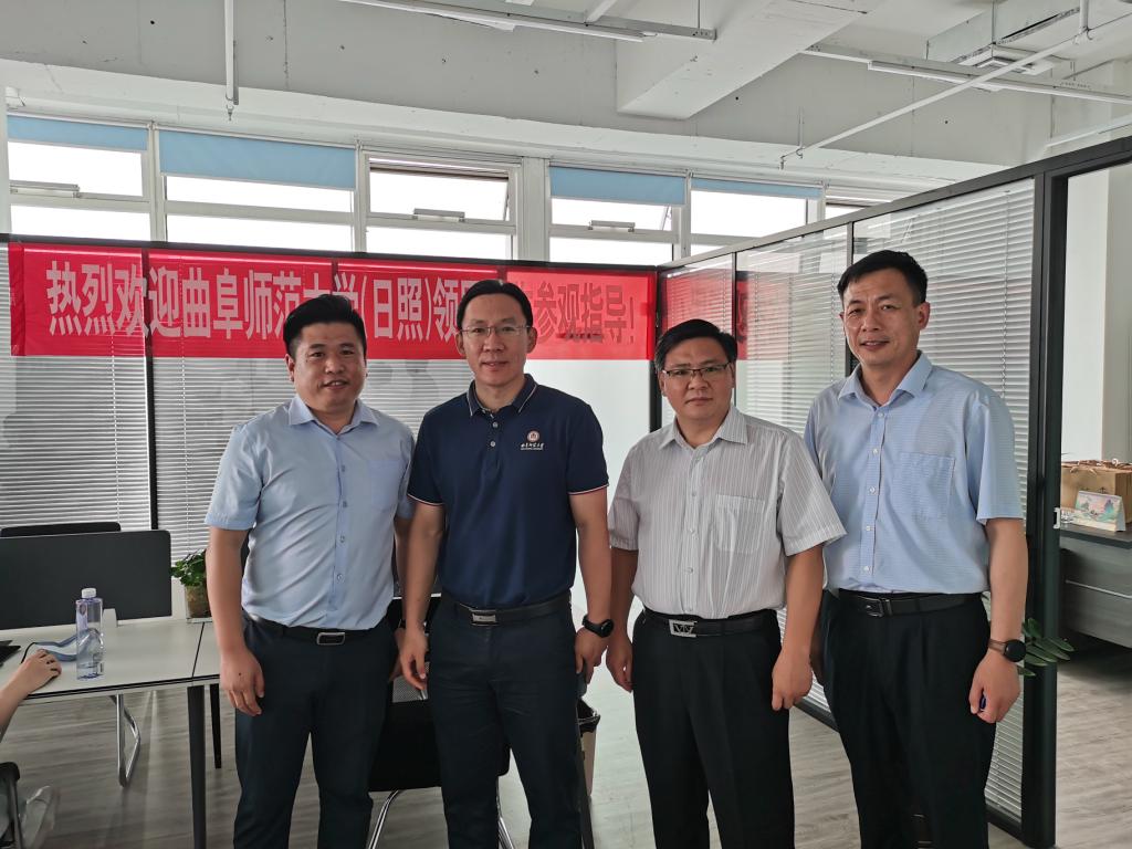 党委书记于健、院长李光顺、党委副书记孙旭春、2018级辅导员纪玉超走访非凡科技公司。