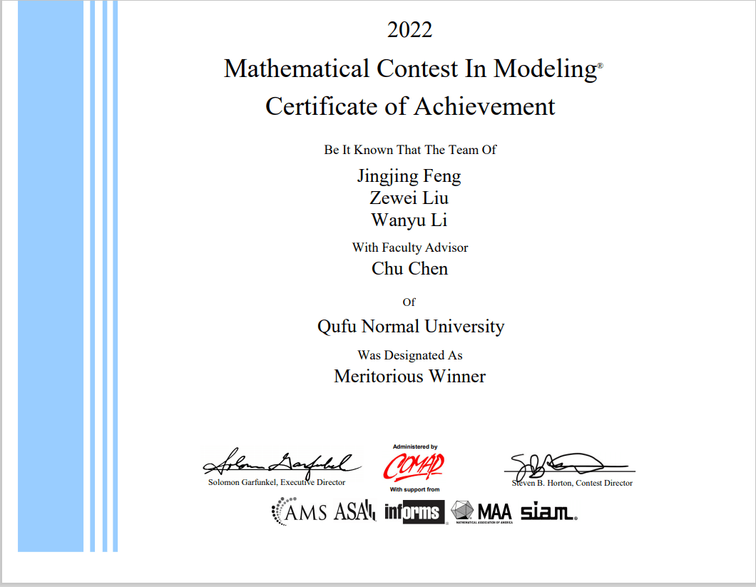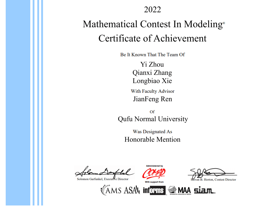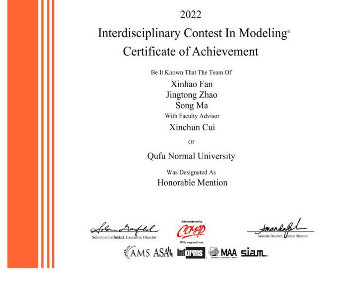美国大学生数学建模竞赛由美国数学及其应用联合会主办,是最高的国际性数学建模竞赛,也是世界范围内最具影响力的数学建模竞赛,一般也指数学建模竞赛。赛题内容涉及经济、管理、环境、资源、生态、医学、安全、等众多领域。竞赛要求三人为一组,在四天时间内,就指定的问题完成从建立模型、求解、验证到论文撰写的全部工作,体现了参赛选手研究问题、解决方案的能力及团队合作精神。