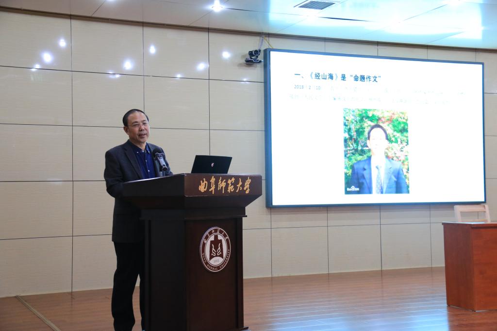 赵德发先生的报告围绕《经山海》的创作过程、获奖情况等方面进行了详细的回顾,从深入山村、渔村寻找创作灵感、搜集创作素材等方面进行了深入的调研,采访了群众、第一书记、乡镇干部等多种类型的人物,广泛的搜集了大量的写作素材。《经山海》通过多角度的创作视角,描写和塑造了乡镇女干部吴小蒿积极勇敢、不怕困难的基层党员工作者的典型形象,展现了在乡村振兴伟大实践过程中党员干部的光辉形象,讴歌了党的领导、时代发展和广大农村的巨大变化,是一部歌颂改革开放背景下乡村振兴场景的鸿篇巨制。赵德发先生也向与会的师生介绍了《经山海》的获奖情况。