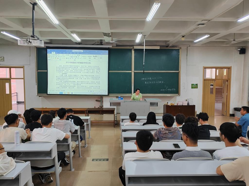研究生开展系列反诈宣传活动。研究生辅导员程荣花老师首先宣读了“济宁市校园反诈防骗明白纸”,让同学们了解电信网络诈骗的形式多样,列举具体案例,向同学们剖析案例中受害人的贪小便宜心理及电信网络诈骗手段的隐蔽性,并提醒同学们不要相信“天上会掉馅饼”,保护好个人信息,避免因信息透露而导致个人财产损失或人身受到侵害。同时动员学生关注“济宁公安新型犯罪研究作战中心微信公众号”,通过观看公众号推送的“反诈防骗”小视频,全面提高同学们的防范意识和能力。