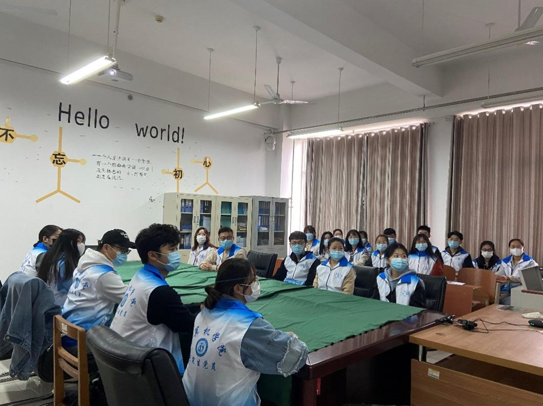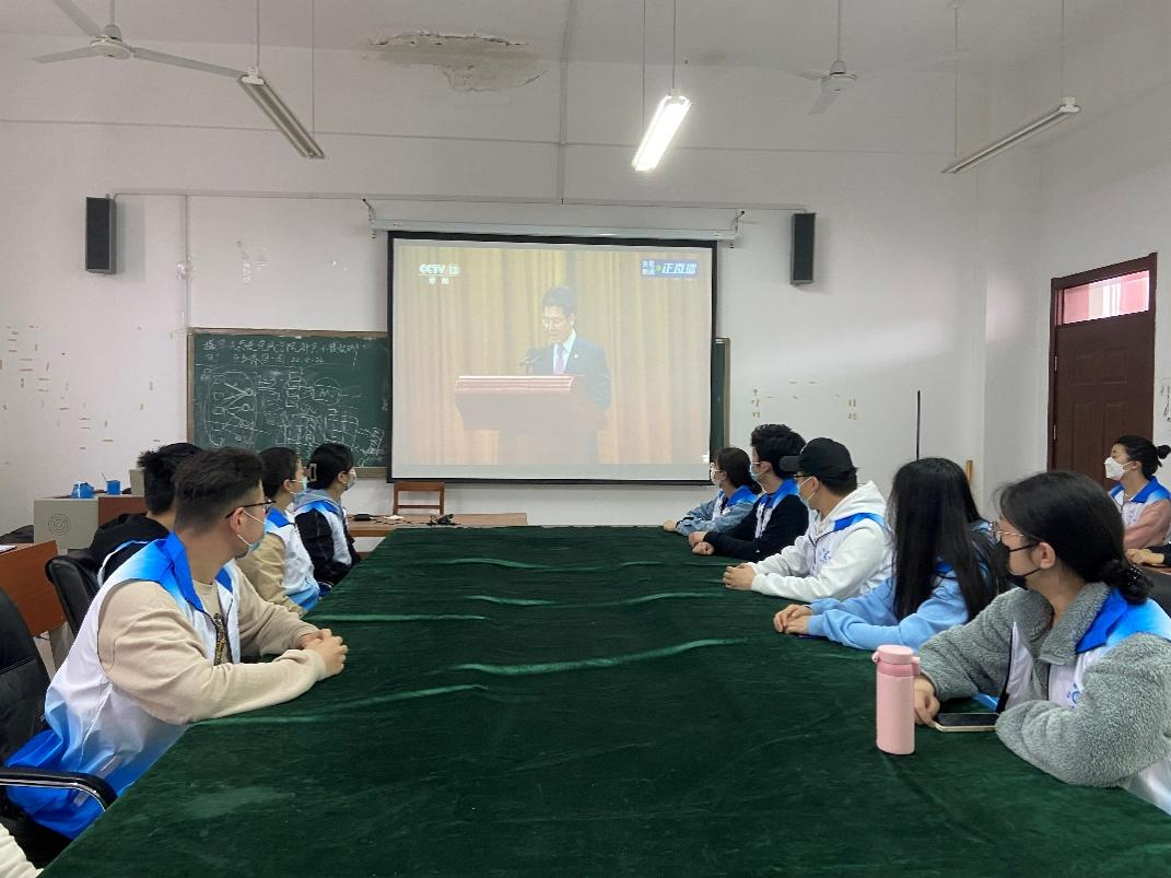 研究生党支部准时组织党员在JS410会议室集中观看,会议由支部副书记汪美荃主持。