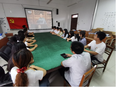 研究生党支部准时组织党员在JS410会议室集中观看。