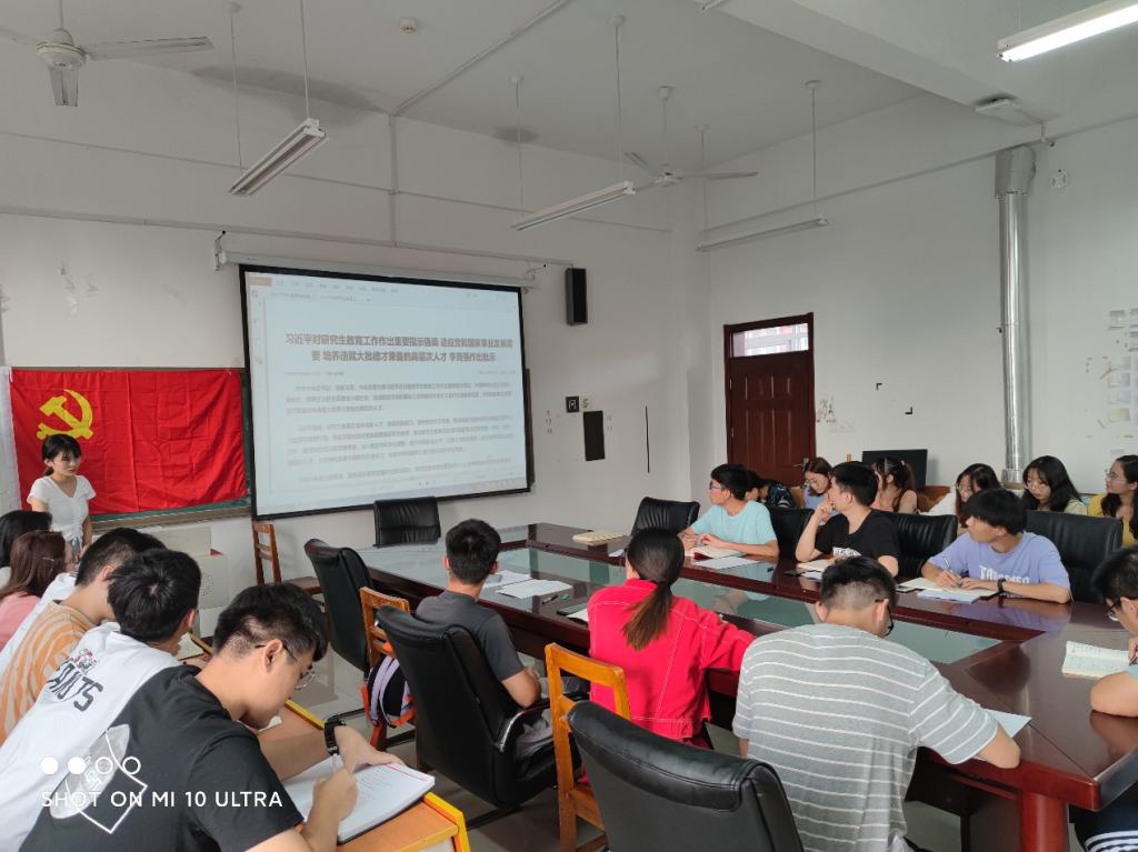 2020年9月24日下午3:15,万博娱乐城 研究生党支部于S410开展“学习习近平总书记在研究生教育工作会议上的讲话和习近平总书记对制止餐饮浪费行为作出重要指示” 学习教育。支部书记尚军亮老师及全体研究生党员参加本次活动。活动由研究生党支部纪律委员李瑶主持,尚军亮老师主讲。