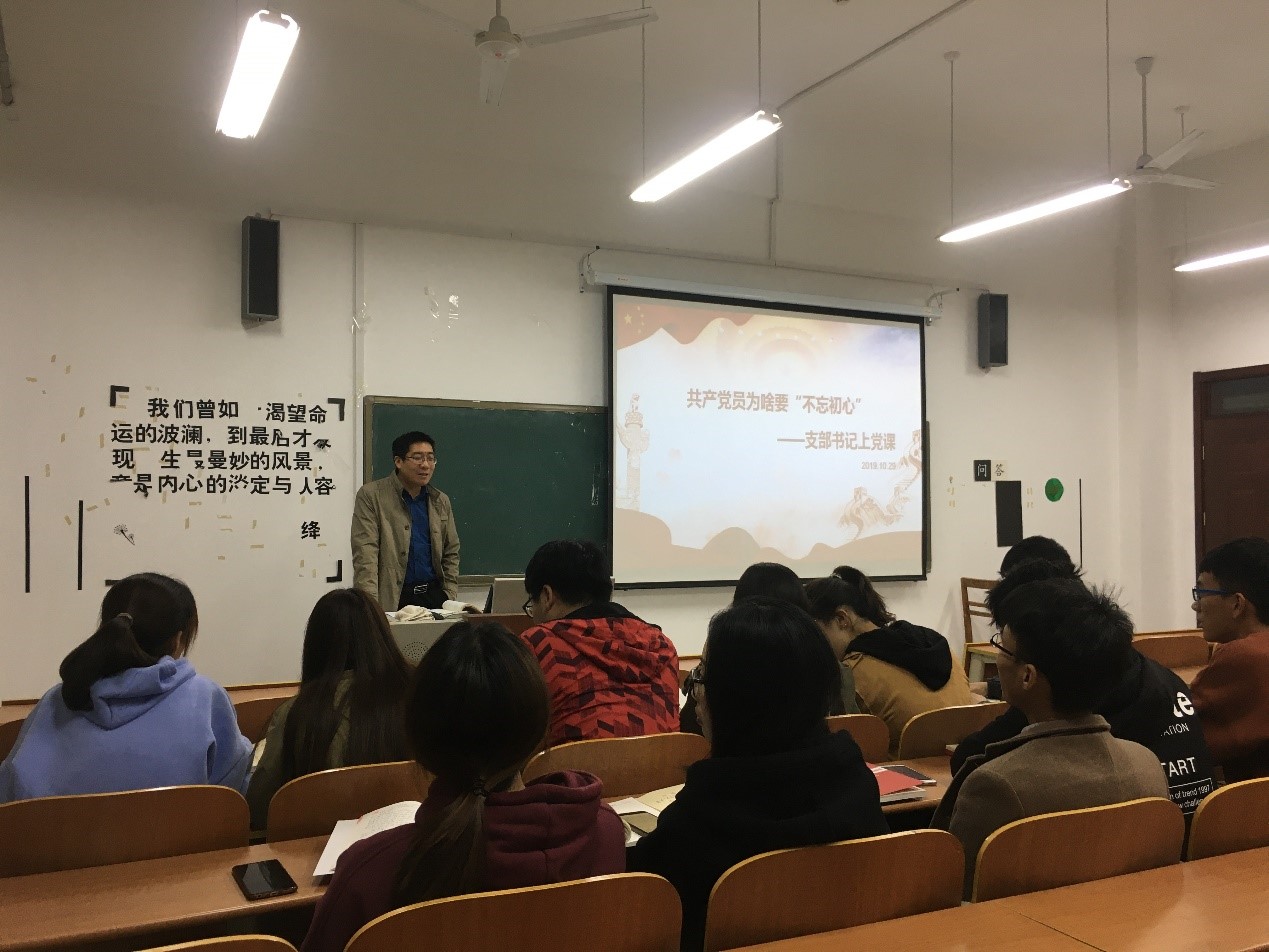 研究生党支部与s410教室开展“共产党员为啥要‘不忘初心’---支部书记上党课”主题党日活动。支部书记尚军亮老师以及全体研究生党员参加本次活动。活动由研究生党支部书记尚军亮老师主持。