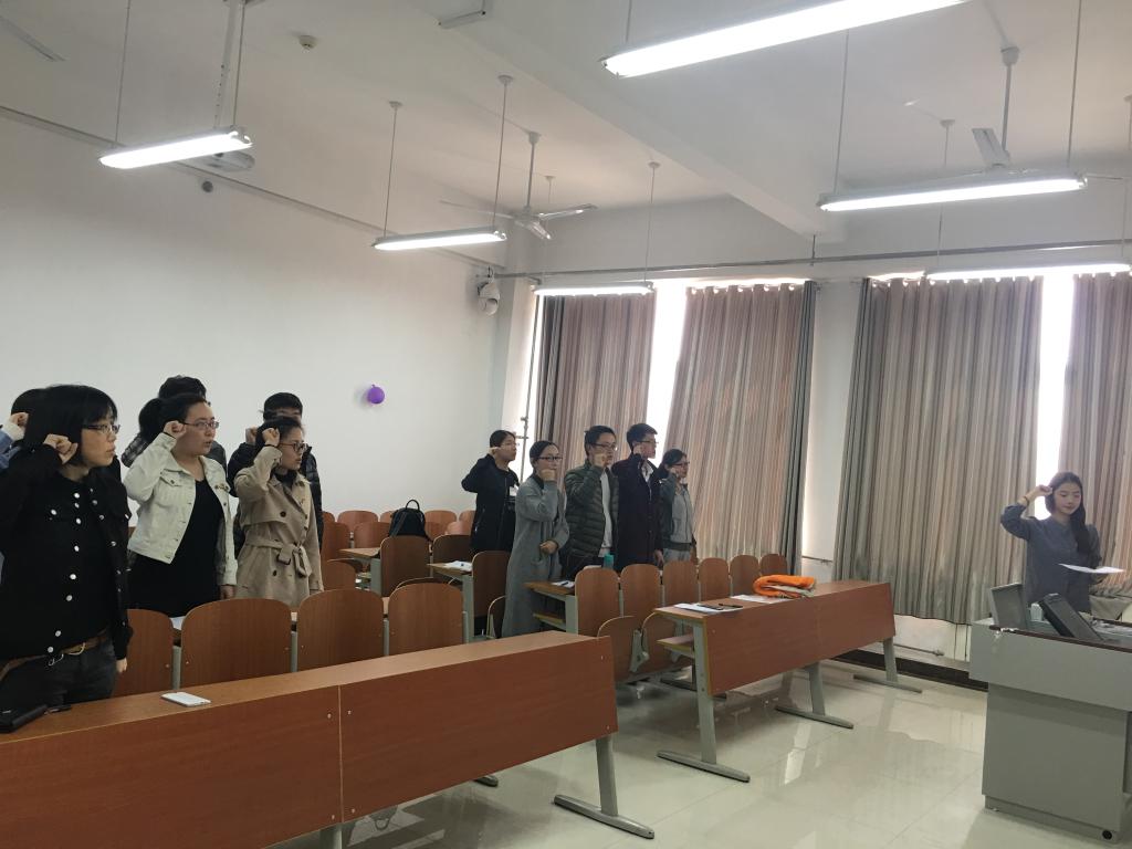 活动在庄严的国歌声中开始,全体党员佩戴党徽,面向党旗重温入党誓词;支部书记夏小娜老师带领全体研究生党员学习万博娱乐城 党委“我是党员,跟我走”主题实践活动实施意见,并结合研究生党支部实际,讨论主题实践活动的具体实施方案;全体党员由所在党支部作出共性承诺内容,每位党员又结合个人情况填写个性承诺内容,并在会议中面对党组织和全体党员宣读承诺书,作出郑重承诺。