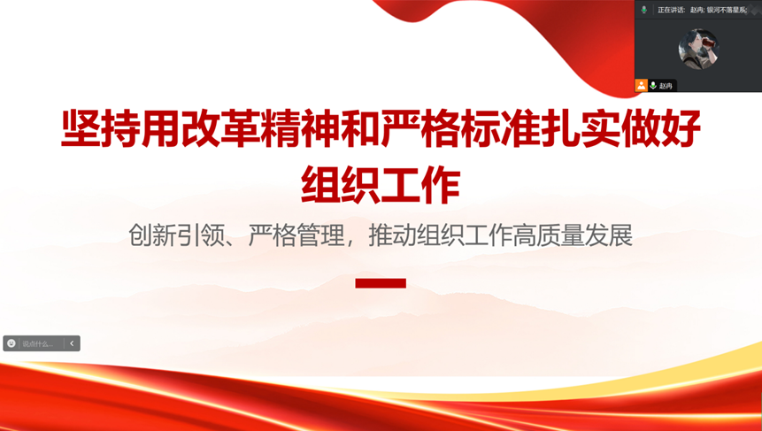 本科生第一、二、三党支部召开主题为《坚持用改革精神和严格标准扎实做好组织工作》的线上学习党日活动,会议由分党校秘书长赵冉主持,全体党员参加。