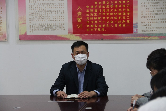 会议伊始,孙书记对即将发展成预备党员的同学表示祝贺,并叮咛各位学员要认真对待此次培训,珍惜本次学习机会,进而提高自己对党的理解和认识。随后,孙书记强调在座人员要加强理论学习,做好笔记,特别是习近平总书记的重要讲话精神,要对党的知识有全面深刻的把握,另外号召在座人员要严格遵守培训纪律,认真领会并复习培训内容,使其入脑入心,同时在平日要注重学习的积累,不断丰富理论基础和提高业务水平。最后,孙书记指出当前发展党员对象的名额有所缩减,鼓励在座人员做好榜样,在日常生活中以党员的标准严格要求自己,做到“发展一个,榜样一个”。