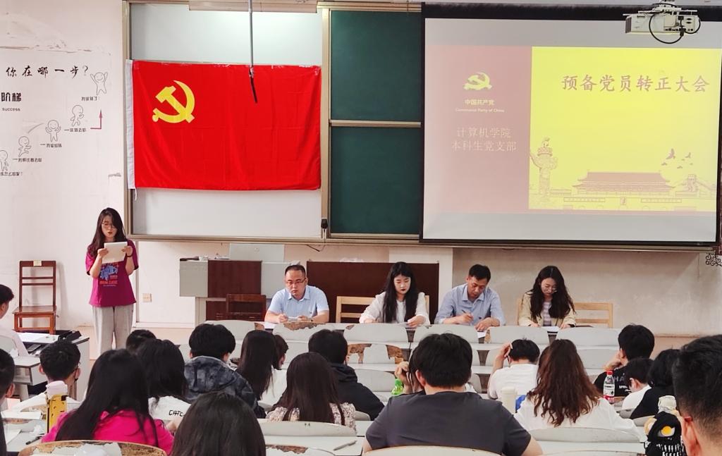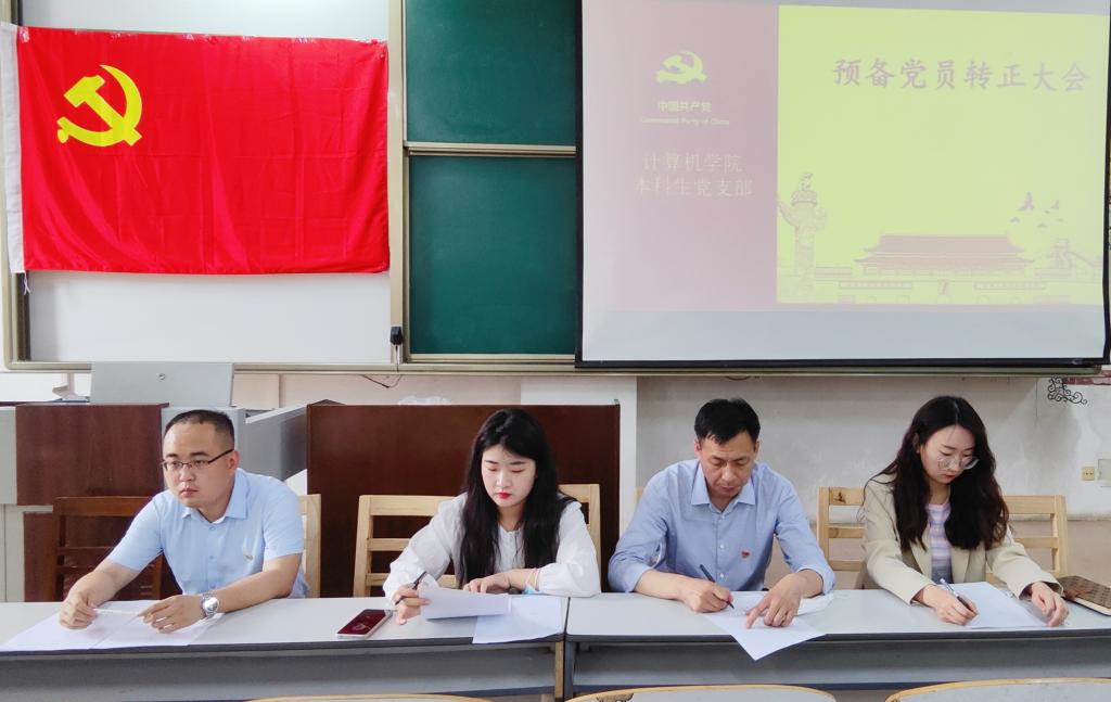 本科生党支部于2022年5月20日在JE103召开预备党员转正大会,表决关于刘楠等39名同志申请转正为正式党员的问题。党委副书记孙旭春、本科生党支部书记孙宇,辅导员刘兆宇、杨丹丹参加本次会议,会议由本科生党支部书记孙宇主持。