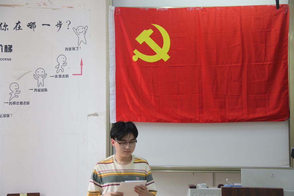 本科生党支部书记孙宇的带领下,与会党员对习近平总书记在庆祝中国共产主义青年团成立100周年大会上的讲话进行了学习,并深入交流研讨,让大会精神掷地有声。本次转正大会采取线上、线下结合的形式召开,在校的32名同志上台宣读《转正申请书》,汇报情况,不在校的7名同志则采取线上会议的方式进行转正。随后与会党员作出评议,各预备党员同志发言表态。大会采取无记名投票的方式,表决通过转正申请。