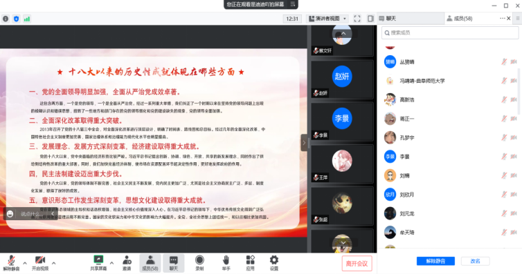 本科生党支部在线上开展理论学习教育,本科生党支部全体党员参加会议。