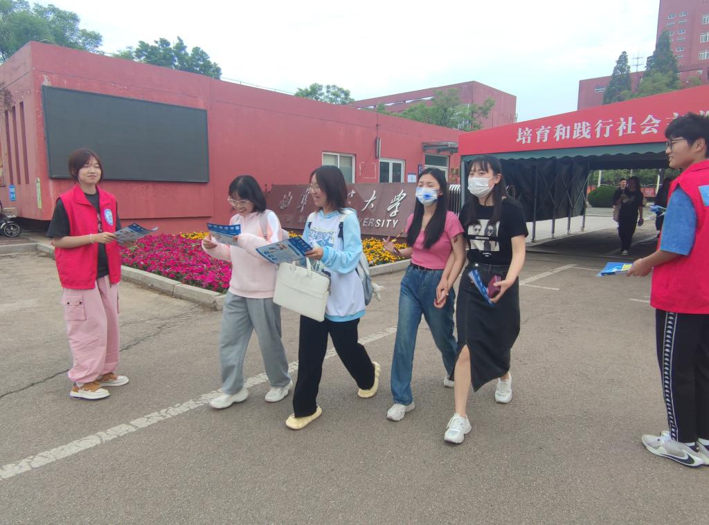 为提高高校大学生的安全意识,筑牢校园安全防线,万博娱乐城 于2023年6月4日,通过发放反诈宣传单和对同学们进行反诈骗宣讲,开展了主题为“学思践悟新思想,砥砺奋进新征程”的防诈骗宣传志愿服务活动。计算机学院本科生第一党支部、第二党支部、第三党支部和社会实践部成员参加。