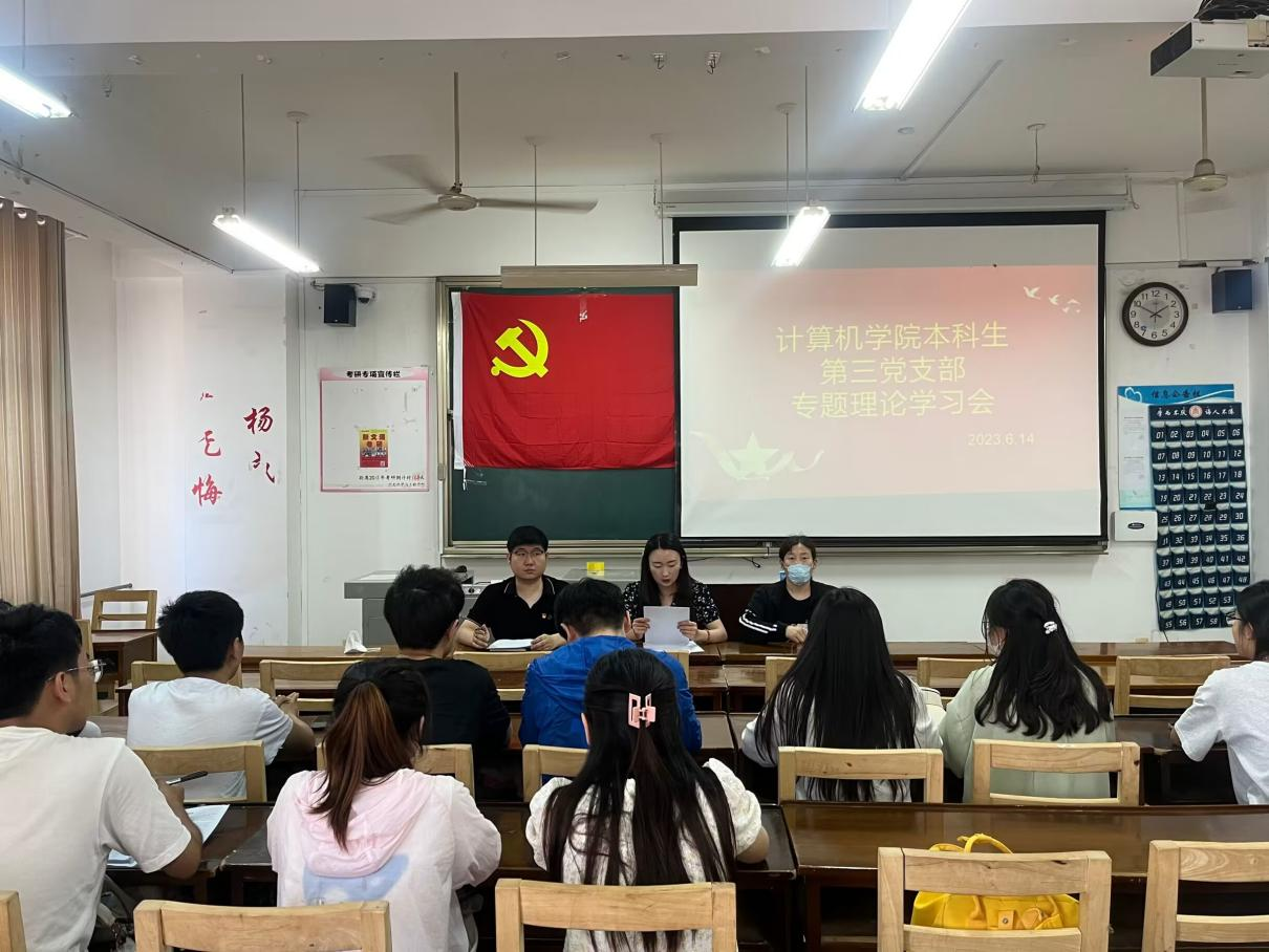 本科生第三党支部于JC412召开专题理论学习会。本次会议由第三支部书记杨丹丹主持,支部全体党员参加。