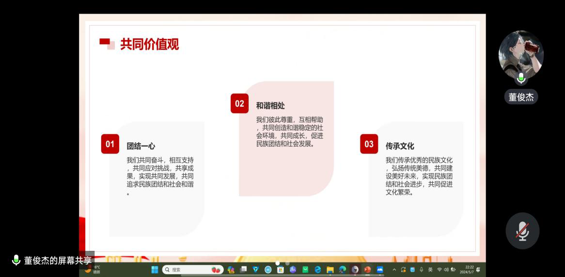 本科生党支部召开主题为《铸牢中华民族共同体意识,推进新时代党的民族工作高质量发展》的线上学习党日活动,会议由分党校秘书长董俊杰主持,全体党员参加。