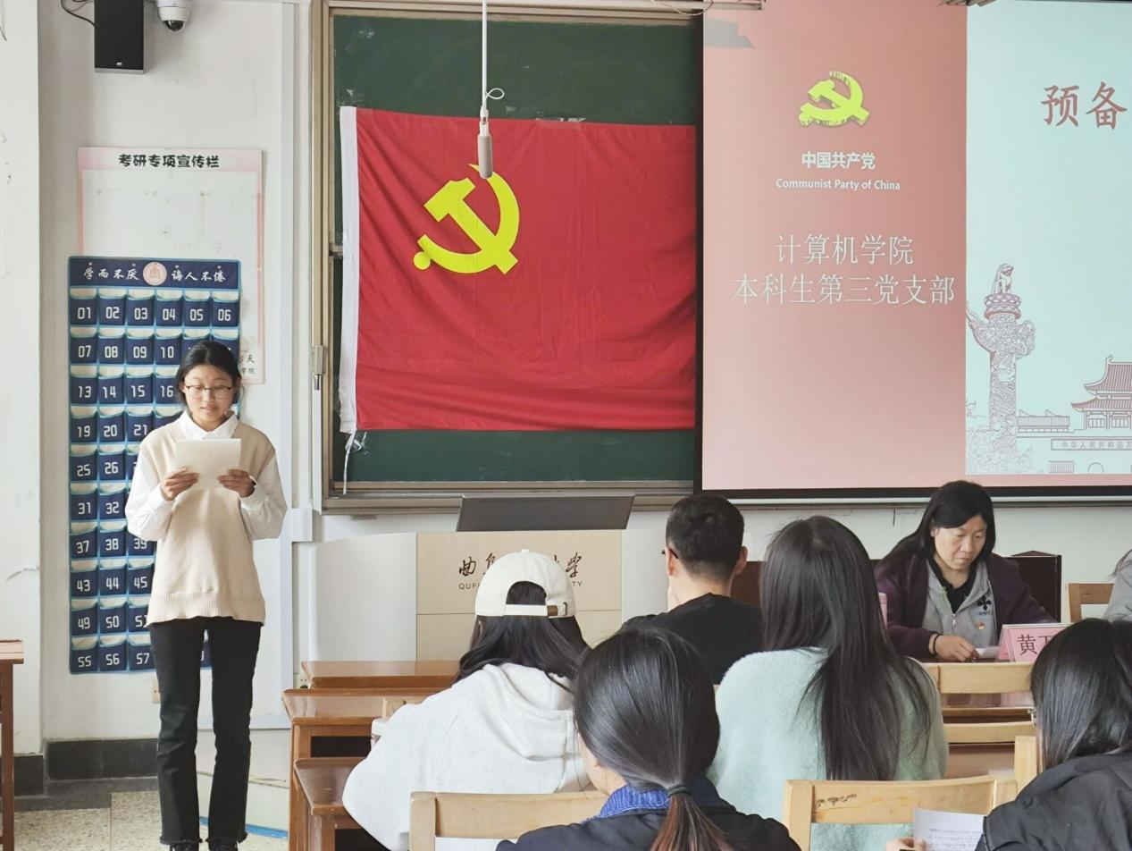本科生第三党支部于JC408召开预备党员转正大会,大会就于静雅同志预备党员转正问题进行讨论和表决。万博娱乐城