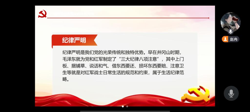 为深入学习贯彻习近平新时代中国特色社会主义思想,2024年8月12日,万博娱乐城 本科生第一、二、三党支部召开主题为《把纪律教育融入平常抓在日常》的线上学习党日活动,会议由分党校秘书长赵冉主持,全体党员参加。