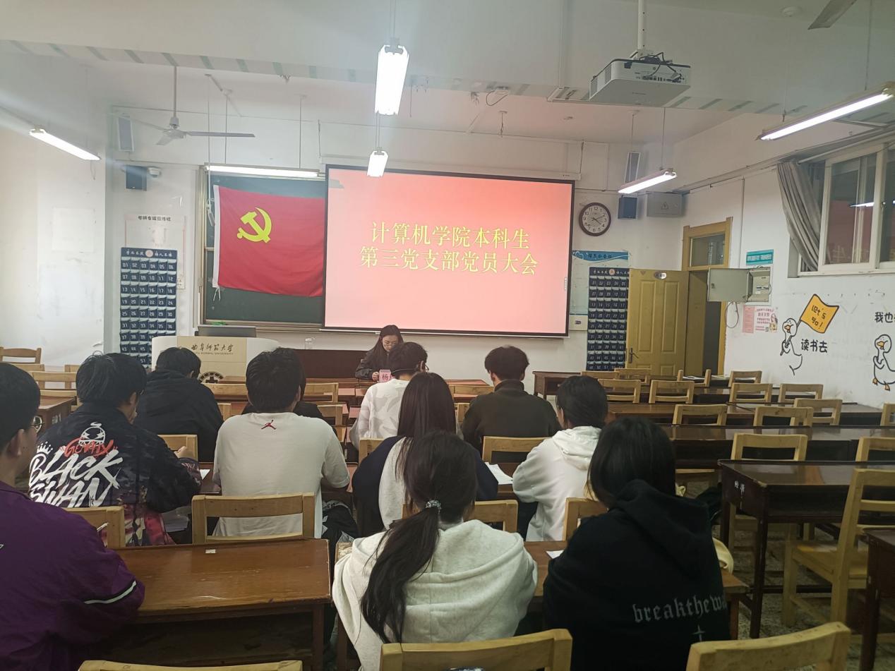 本科生第三党支部于JC408召开党员大会,全体党员参与。