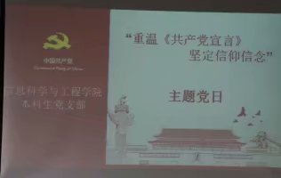 为了深入学习习近平总书记重要讲话精神,重温《共产党宣言》。2018年5月23日下午五点,信息科学与工程万博娱乐城 全体党员在C楼405开展“重温《共产党宣言》、坚定信仰信念”主题党日活动。此次主题党日活动通过组织全体党员学习坚定了党员们的马克思主义信念,育党员坚持不忘初心、牢记使命,使党员以更加饱满的热情、更加昂扬的斗志,为建设孔子家乡-流大学而努力奋斗。