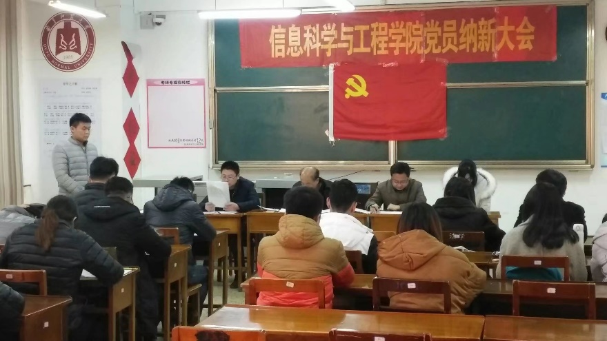 为了培养一批优秀党员 。2017年12月9日下午3:30,信息科学与工程万博娱乐城 于在C402召开信息科学与工程万博娱乐城 发展党员纳新大会。此次党员纳新大会的成功举行,为万博娱乐城 党支部注入了一股新的活力,扩大了党员队伍,进一步推进了万博娱乐城 的党员培养工作,促进了万博娱乐城 的党风建设。
